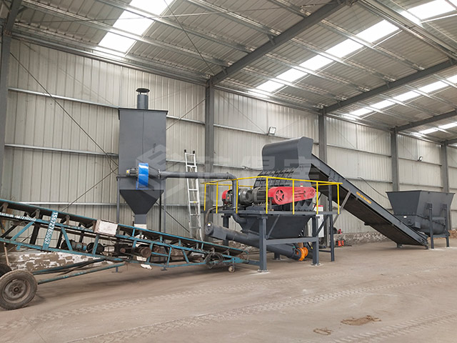 該現場廢舊木材加工生產線只采用一臺重型木材粉碎機作為主加工設備,配以相應輔助設備組成一條廢舊木材處理生產線,該生產線配置少、占地面積小、投資低,很適合個人投資用戶開辦。